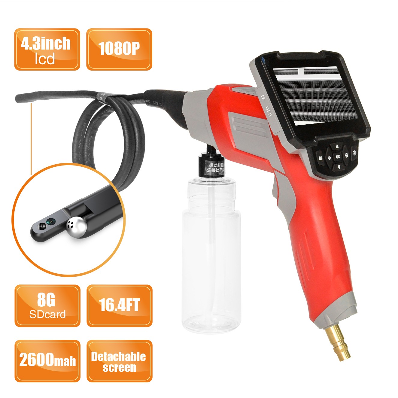 空调可视清洗枪带屏空调管道内窥镜清洗枪汽车可视清洗枪W505